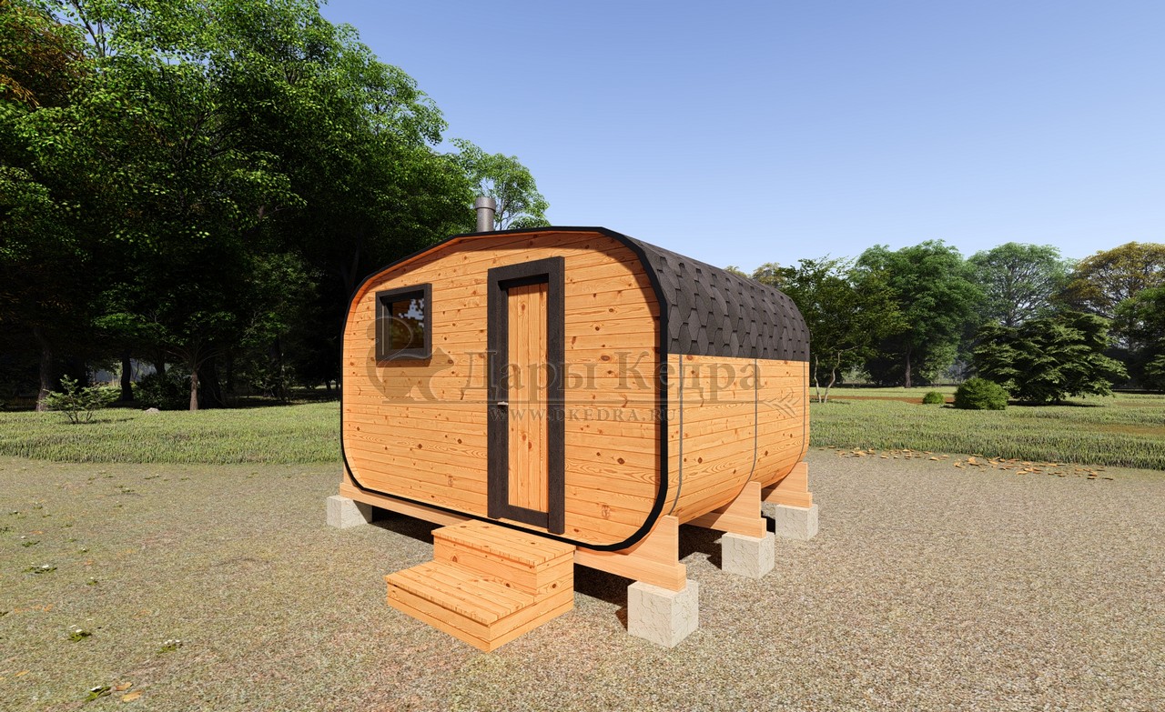 Мобильная баня-бочка с каждым днем набирает все большую популярность благодаря её возможной транспортировки куда угодно: на отдых в лесу, на рыбалку или на побережье реки