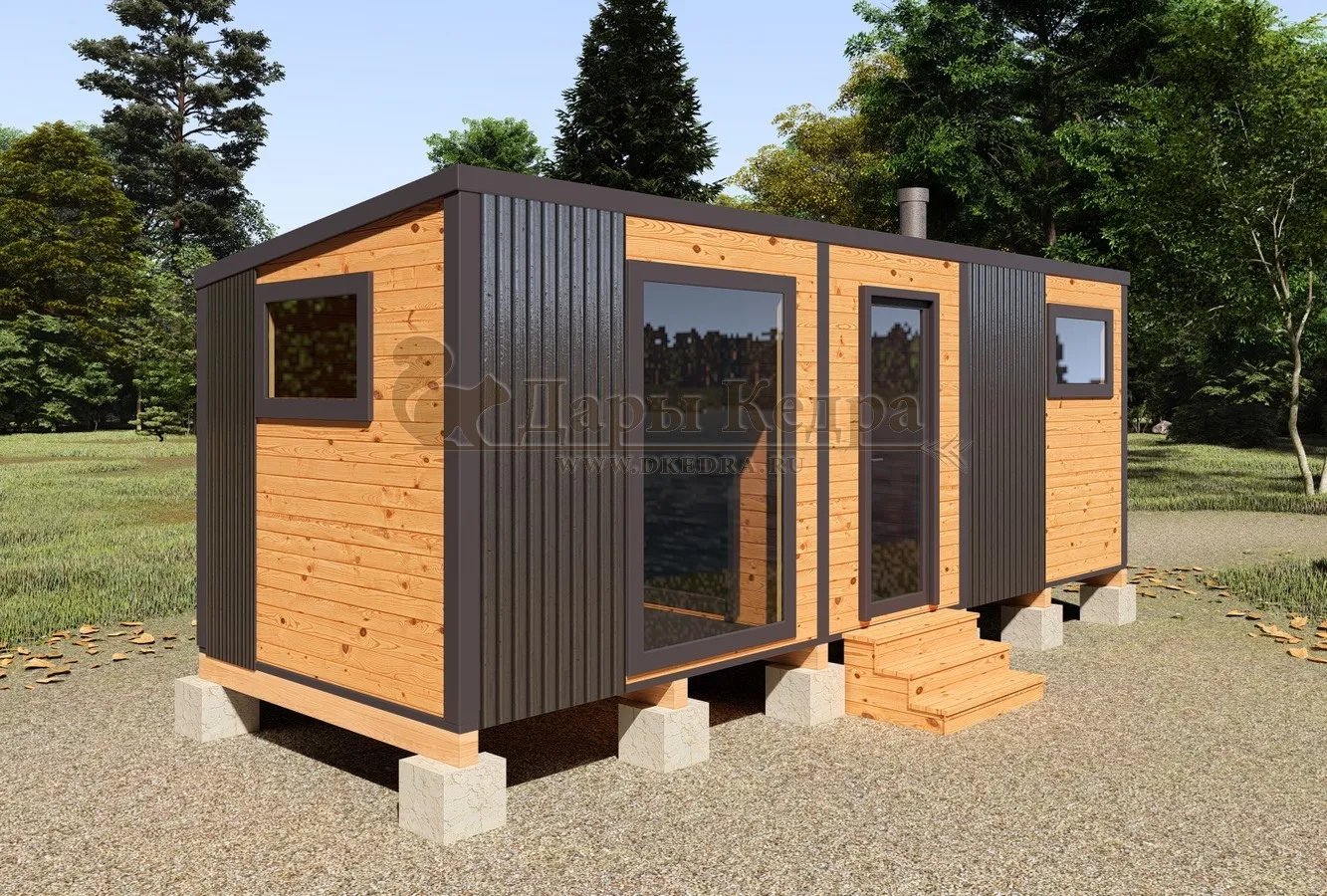 Мы используем высококачественный сибирский кедр для внутренней и внешней отделки, а также профнастил для кровли и некоторых элементов фасада. Кедр известен своими целебными свойствами, долговечностью и устойчивостью к влаге и перепадам температур.