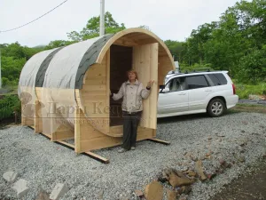 Банная конструкция в виде бочки стала популярной не так давно, но уже за такое короткое время успела завоевать к себе симпатию по всему миру. Баню-бочку можно установить на небольшом участке, а при желании потом ее перевезти, если возникла такая необходимость. Или взять такую круглую парилку с собой на рыбалку, охоту, в лес, чтобы отдых был полезным и комфортным. Круглую парилку можно использовать не только по прямому назначению, но и в качестве летней кухни или кемпинг-домика.