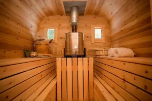 Мобильная баня-бочка с каждым днем набирает все большую популярность благодаря её возможной транспортировки куда угодно: на отдых в лесу, на рыбалку или на побережье реки