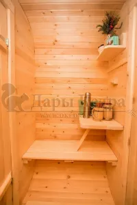 Обращаем Ваше внимание, что в стандартную комплектацию бани входят лавки в парной с обеих сторон. Дополнительно можно заказать полок открытого или закрытого типа!