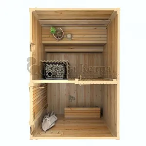 Это классическая прямоугольная модель бани с двумя отделениями: парилкой и раздевалкой. Для удобства пользования раздевалка оснащена лавочкой и вешалкой. Парилка оборудована двухуровневым открытым полком и печью. За счет небольшой конструкции баня нагревается в течении 30 минут. Ее можно заказать как в готовом, так и в разборном варианте. В разборной модели готовые щиты из кедра быстро собираются в полноценное строение, что также позволяет исключить лишний строительный мусор. Каркасно-щитовая баня не требует полноценный фундамент, поэтому при необходимости ее можно перенести в другое место.