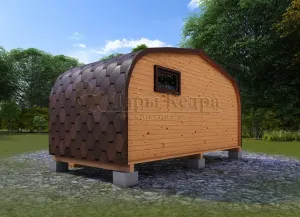 Баня-бочка представляет собой конструкцию в виде бочонка без углов. Такая форма считается оптимальной для равномерного распределения пара по всей внутренней поверхности парной. Таким образом, пар не скапливается в одном месте, а циркулирует по всему объему. Соответственно, круглая (квадратная, овальная) баня экономичная: топится быстро, требует дров мало.