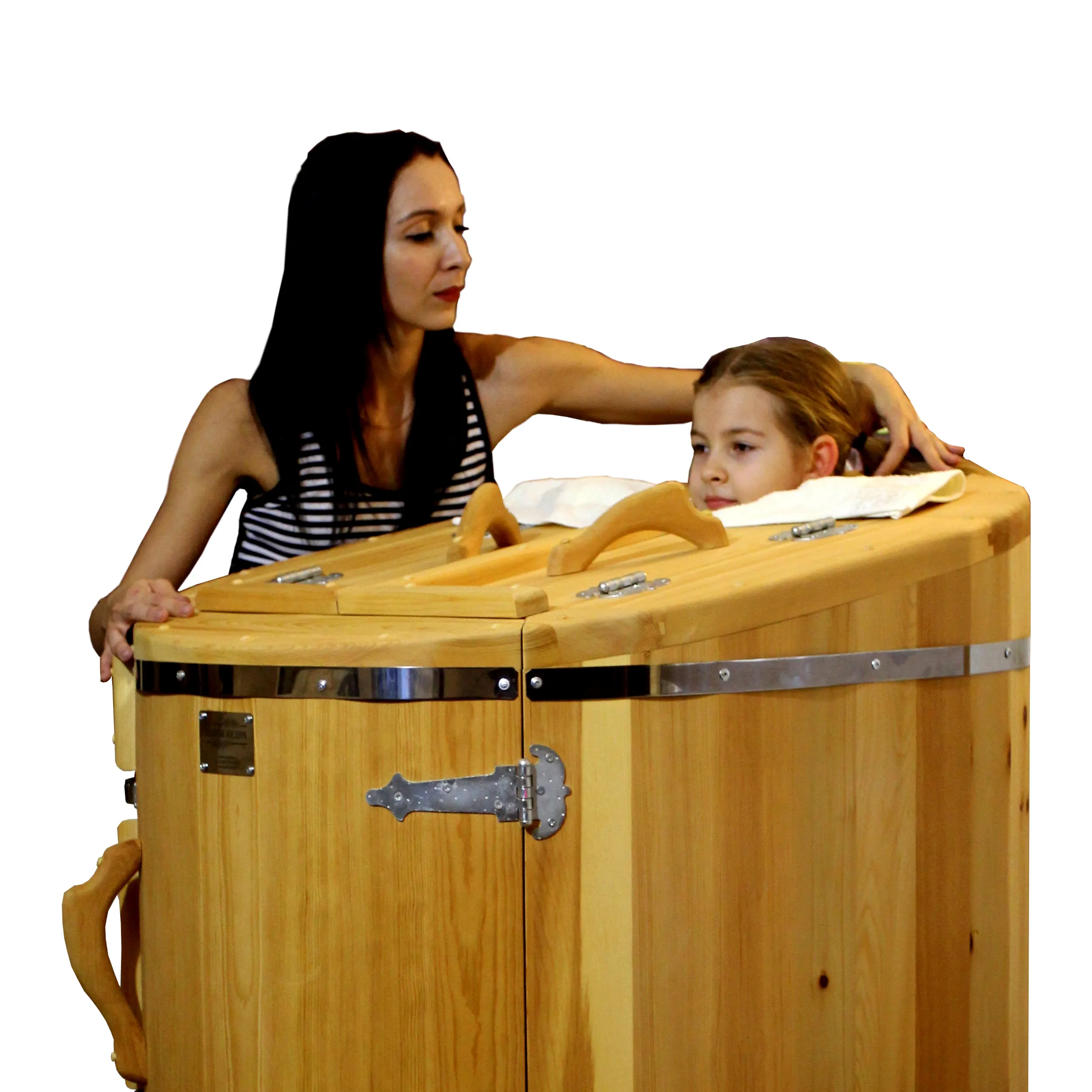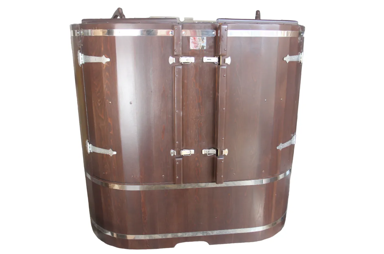 Круглая фитобочка представляет собой мини парную, которую можно использовать не только в спа-салонах, но и дома. Бочка изготовлена из древесины кедра без отбора по сучкам, поэтому такая модель считается более доступной. Фитобочка оборудована откидными створками, дверцей и отверстием для головы. Во время парения человек сидит внутри кедровой бочки, а голова находится снаружи. Благодаря этому исключается возможность перегрева. Подлокотники из кедра, встроенные ручки на створках и двери делают эксплуатацию более удобной.