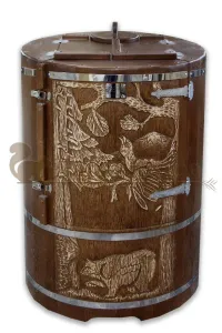 Художественное оформление на лицевой части, сбоку или на всей площади кедровой бочки по вашему эскизу.