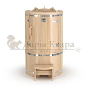 Готовый комплект - это полностью укомплектованный набор с фитобочкой для процедур парения. Круглая модель наиболее компактна и мобильна. Толщина стенок составляет 25 мм. Фитобочка оборудована откидными створками, дверцей и отверстием для головы. Во время парения человек сидит внутри кедровой бочки, а голова находится снаружи. Благодаря этому исключается возможность перегрева. Подлокотники из кедра, встроенные ручки на створках и двери делают эксплуатацию более удобной.