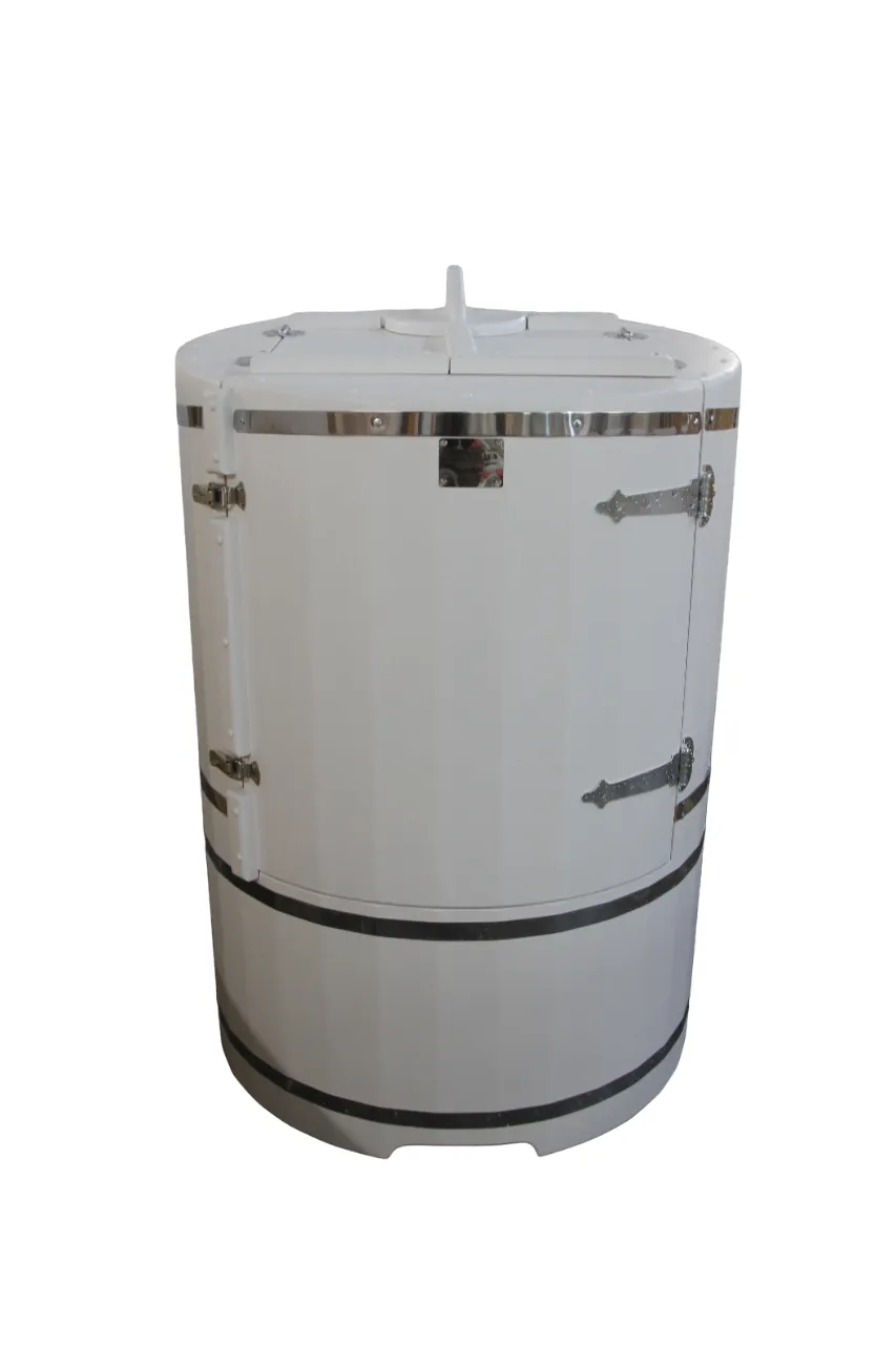 Фитобочку можно также декорировать канатной веревкой в места обручей из нержавеющей стали (оплачивается дополнительно).