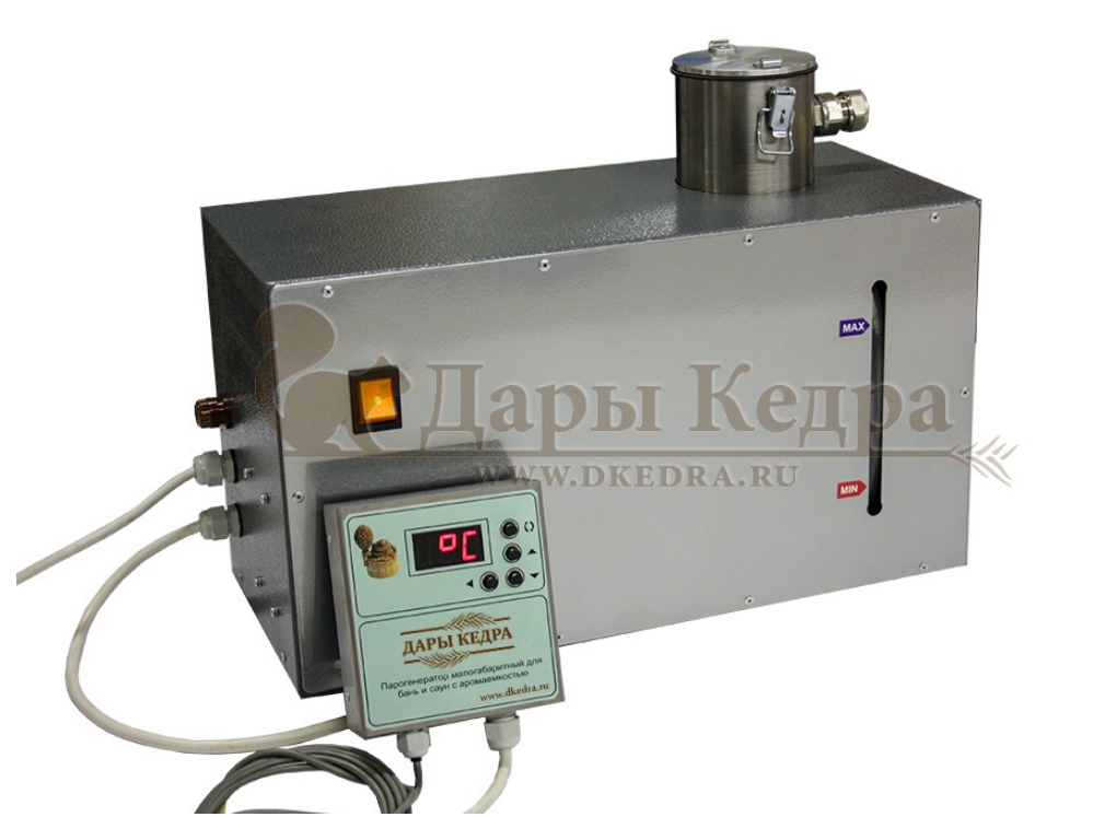 Покупали в Дарах Кедра круглую бочку и отдельно потом докупали такой парогенератор, не очень мощный, но вполне хватает. Нас устраивает. Тем более цена-качество очень порадовали:)) Спасибо, все работает!