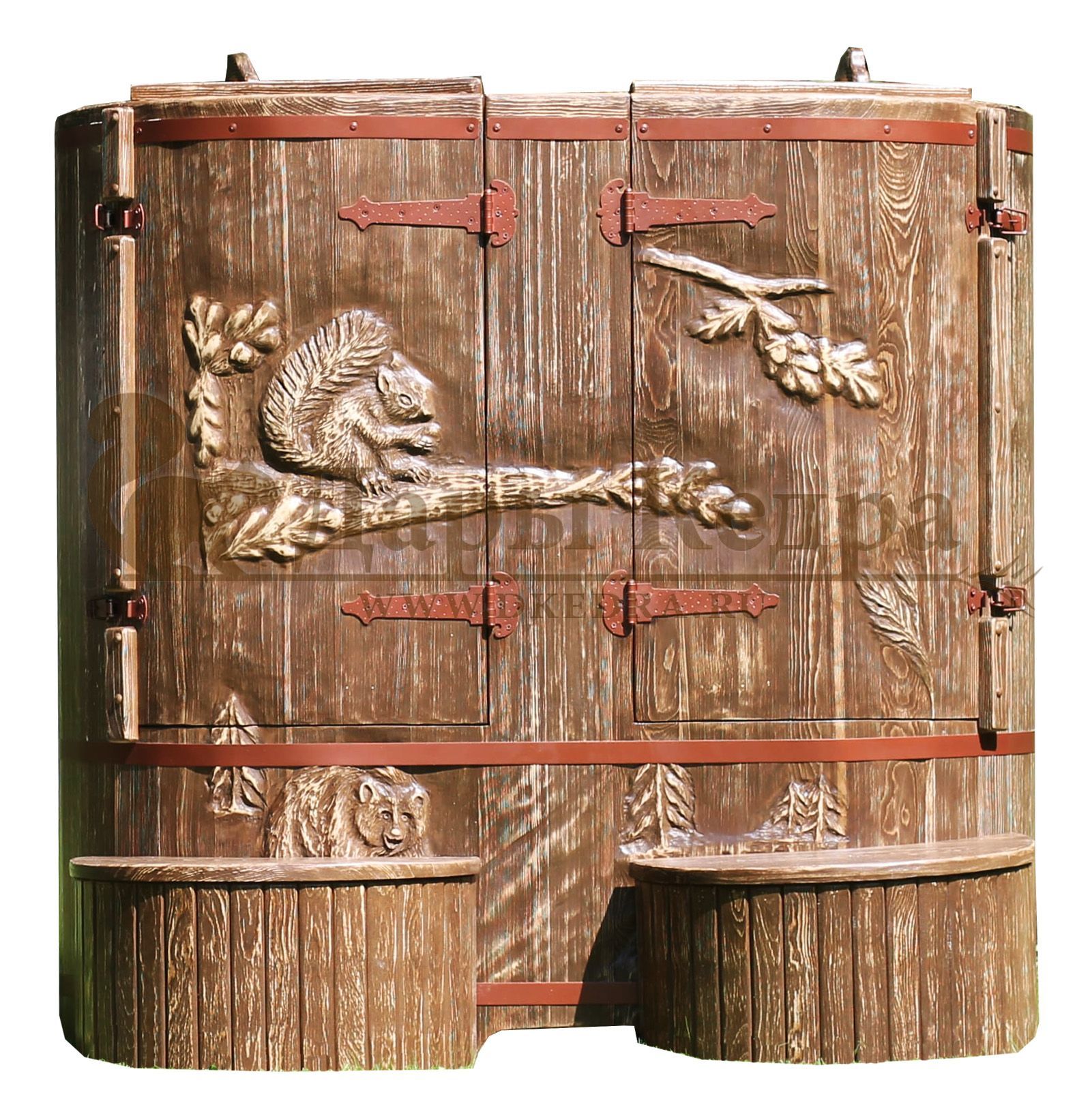 Кедровая бочка (фитобочка) «Дикий лес» Любая модель эксклюзивной фитобочки - это выбор не только дизайнеров и ценителей красоты, но и тех, кто любит нестандартный подход в любых деталях. С оригинальной авторской фитобочкой Дары Кедра ваша квартира, дом или салон красоты станут объектом всеобщего внимания, ведь такая фитобочка - это не просто смело, красиво и достойно, это еще и очень полезно для Вашего здоровья! Художественная резьба это ручная работа, выполняется разными мастерами и каждый рисунок неповторим. Вы можете выбрать предложенные варианты резьбы или подобрать изображение и мы предложим вам подходящий эскиз. На сайте представлены наши работы в качестве примера. Каждая резьба рассчитывается индивидуально и может быть нанесена на любую модель фитобочки. Эксклюзивная фитобочка может быть представлена в разной цветовой гамме: После того, как цвет фитобочки выбран, необходимо определиться с вариантом резьбы (или предложить свой): Фитобочку можно также декорировать канатной веревкой в места обручей из нержавеющей стали (оплачивается дополнительно).