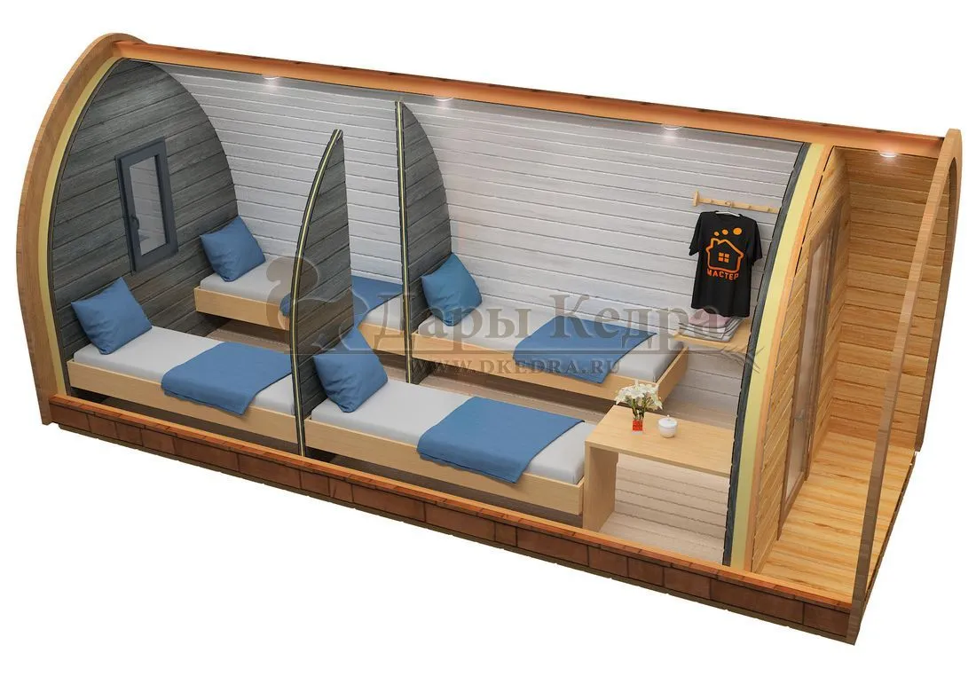 Кемпинг-дом (или глэмпинг-дом) — это специализированный вид модульного дома, разработанный для быстрого размещения на туристических базах, в кемпингах и на частных участках. Он отличается компактностью, стильным дизайном (часто с панорамным остеклением или необычной формой, как наши дома-бочки), высокой мобильностью и, в нашем случае, использованием натурального алтайского кедра. Наши дома поставляются в высокой степени готовности, что позволяет запустить их в эксплуатацию в кратчайшие сроки.