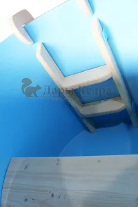 Приставная лестница с тремя ступенями и закруглёнными перилами обеспечит максимальный комфорт при входе и выходе из купели.