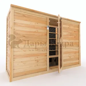 Это специально оборудованная кедровая кабина для прогрева тела человека сухим теплом. Воздух в таких парных не нагревается. Инфракрасные лучи воздействуют на тело, равномерно прогревая мышцы, суставы и органы. Карбоновые излучатели, встроенные в стены кабины, обладают мягким прогревом, что полностью исключает возможность ожога. Работает кабина за счет электричества. Пятиместная инфракрасная сауна с карбоновыми излучателями подходит для коммерции.
