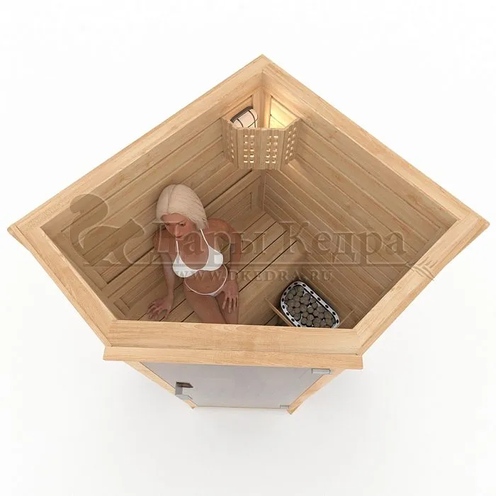 Двухместная угловая финская сауна кабина из кедра с электрокаменкой