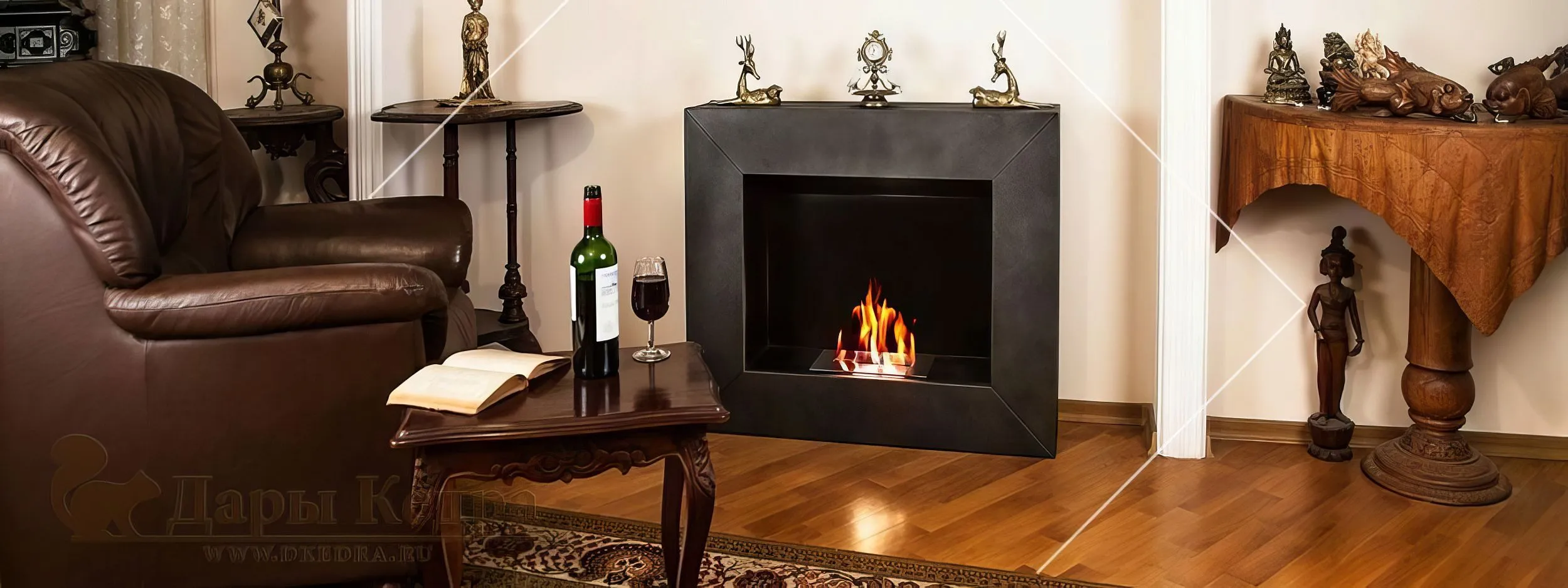 - Любой вариант биокамина (настольный, напольный, настенный, встраиваемый) добавит ощущение уюта. Особенно красиво наблюдать за огнем в вечернее время суток. Собраться с семьей у камина, посмотреть семейные фотографии - это не только красивая картинка в журнале, но и вполне доступная реальность.