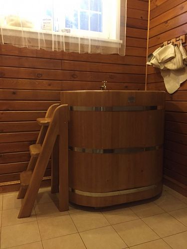 Купель стоит в банном комплексе, выдерживает натиск более 30 клиентов в день! Эксплуатация очень высокая, кедр прочный, с нагрузкой справляется! Спасибо за качество!